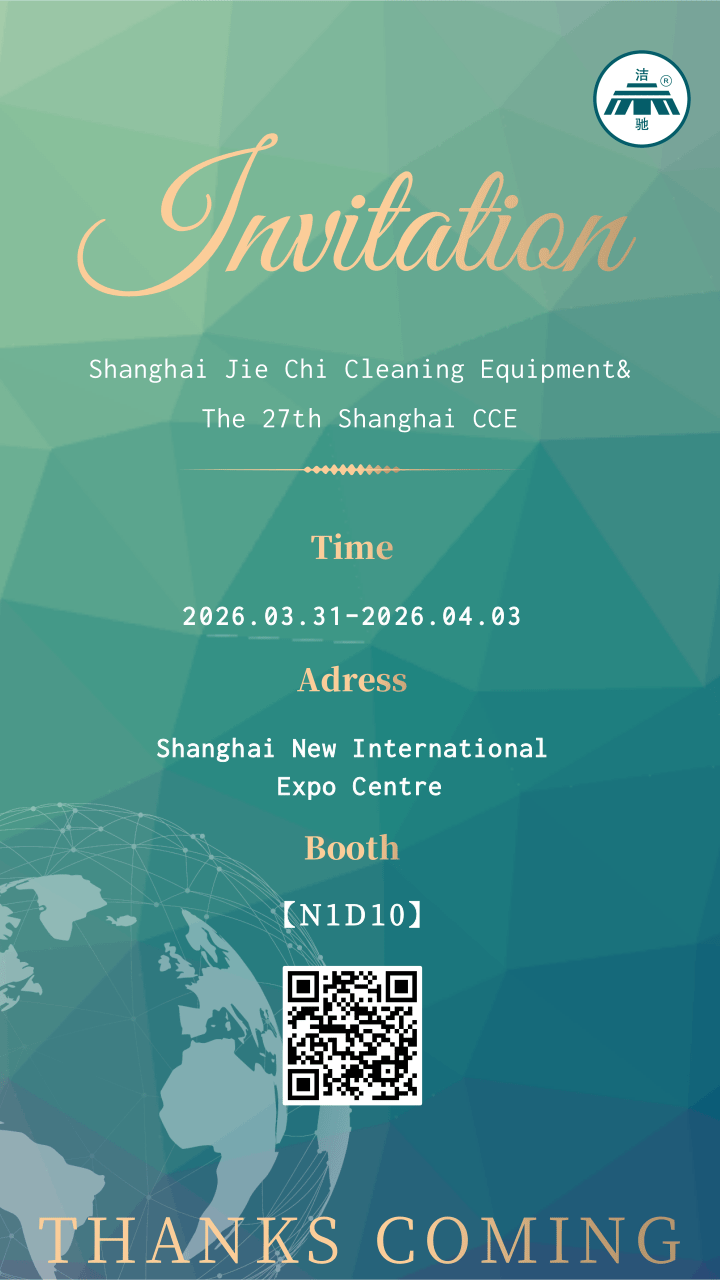 Perusahaan Peralatan Pembersih Shanghai Jie Chi, Ltd.Dengan hormat kami mengundang Anda ke acara besar industri ini, di mana kami akan mempresentasikan teknologi pembersihan mutakhir dan solusi lengkap, serta bersama-sama menjelajahi masa depan baru dari pembersihan cerdas.